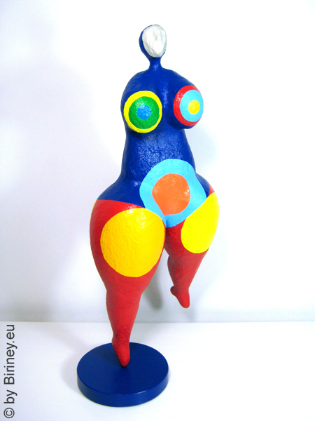 Höhe 49cm, Unikat-Figur „Hephaista“ aus Holzmaché, mehrfarbig gefasst, für Kunden in Delbrück / Deutschland.
